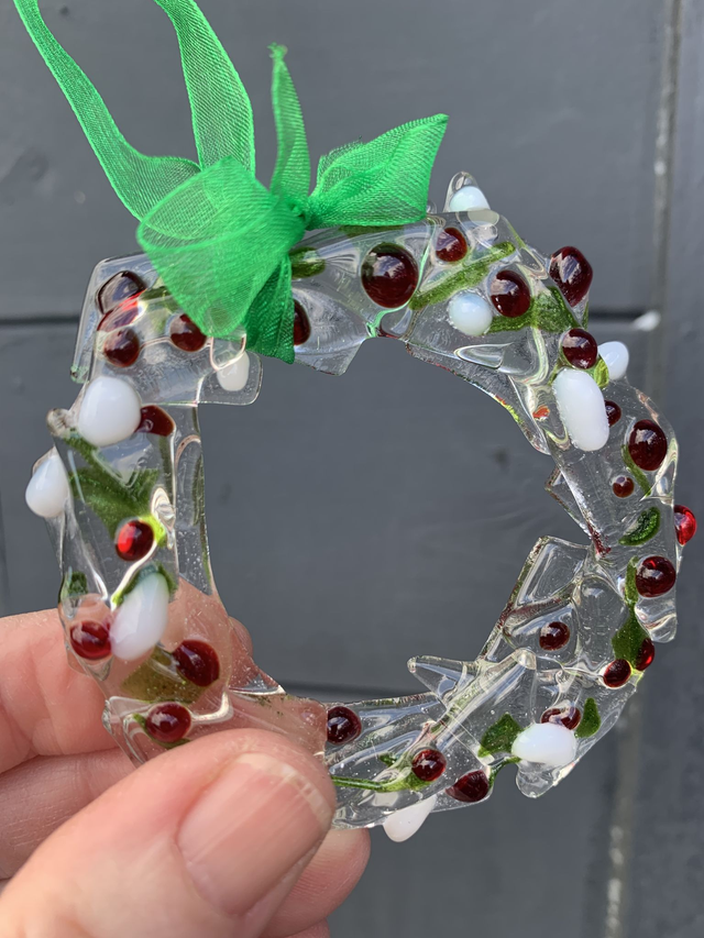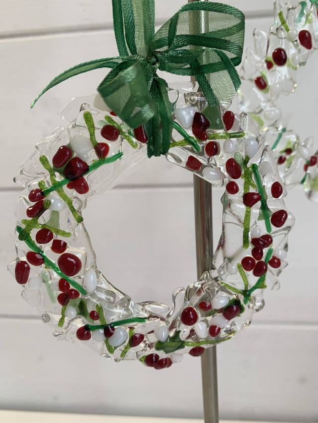 Christmas Wreath Tree Decoration in Fused Glass