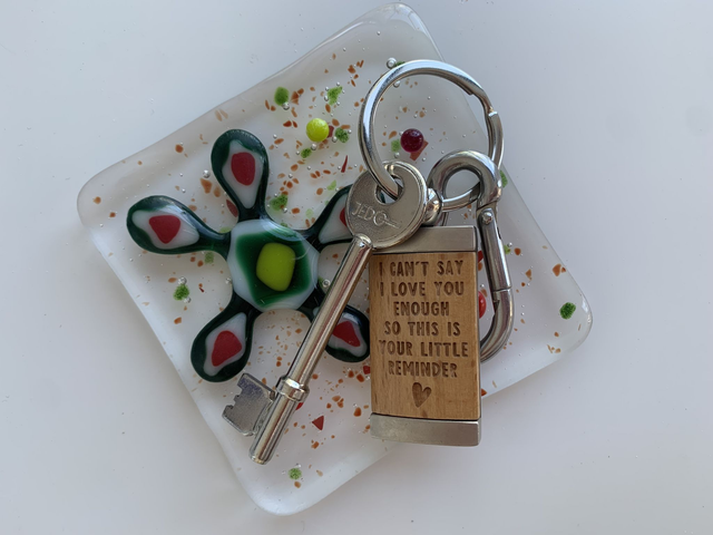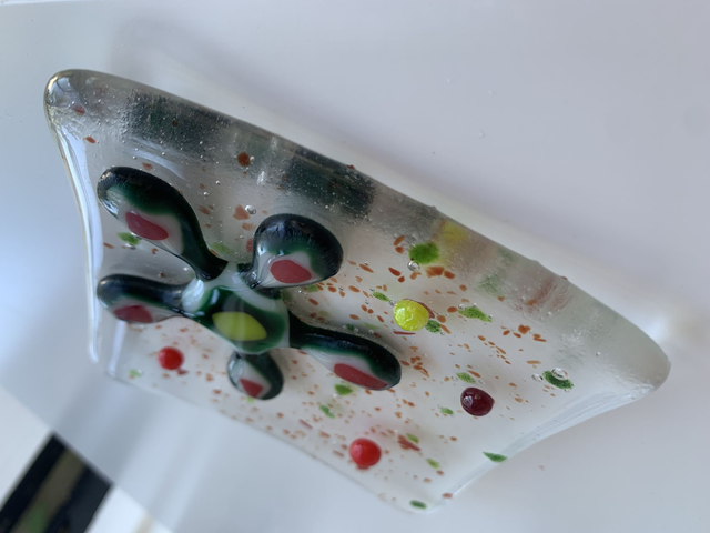 Our fused glass items are made in our studio overlooking the Devon coast, using a mixture of double layered bullseye glass with complementary additions. Each piece is entirely unique and of individual design. Fully fused to create a tactile and beautifully contoured finished piece.