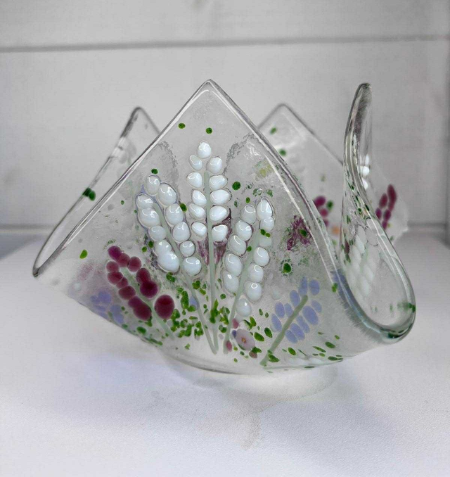Discover the magic of glass fusing as you design and create your own beautiful draped glass bowl. In this hands-on workshop, you’ll be arranging coloured glass pieces of frit and stringers in your own unique patterns on a piece of clear art glass. Once fused and slumped in the kiln, your piece will transform into a unique bowl that’s both functional and decorative — perfect as a serving dish, candle holder, trinket bowl, or striking centrepiece. After about 14 days, your glass will be packaged and sent to you. Ideal for beginners and creative enthusiasts alike!