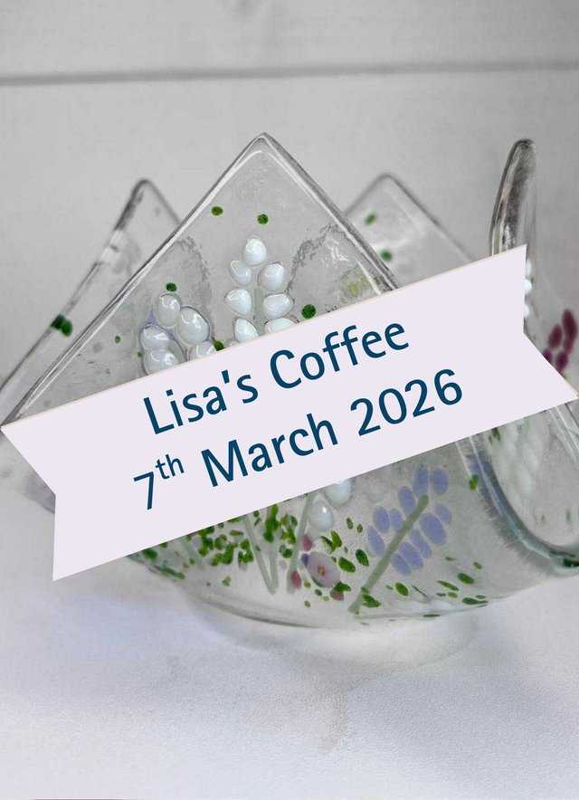 Discover the magic of glass fusing as you design and create your own beautiful draped glass bowl. In this hands-on workshop, you’ll be arranging coloured glass pieces of frit and stringers in your own unique patterns on a piece of clear art glass. Once fused and slumped in the kiln, your piece will transform into a unique bowl that’s both functional and decorative — perfect as a serving dish, candle holder, trinket bowl, or striking centrepiece, ready for collection about 10 days later from Lisa's Coffee. Ideal for beginners and creative enthusiasts alike!