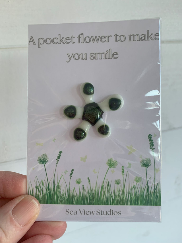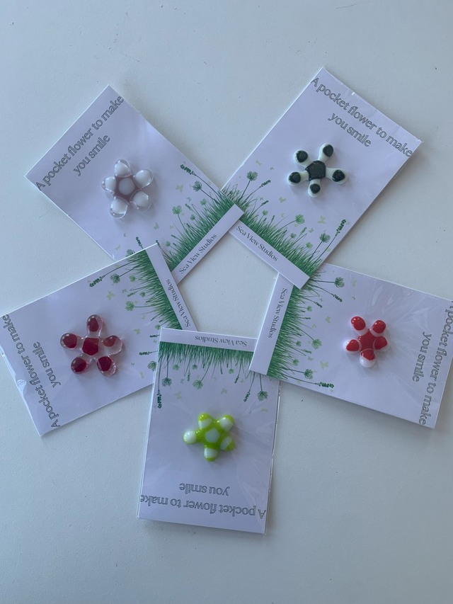 Pocket Glass Hand Crafted Gift of a Heart, Flower or Splat